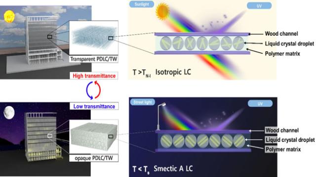 Учёные из Южной Кореи разработали прозрачную древесину для умных окон. Материал меняет прозрачность в зависимости от температуры, полностью блокирует ультрафиолет и удерживает тепло в пять раз лучше обычного стекла.